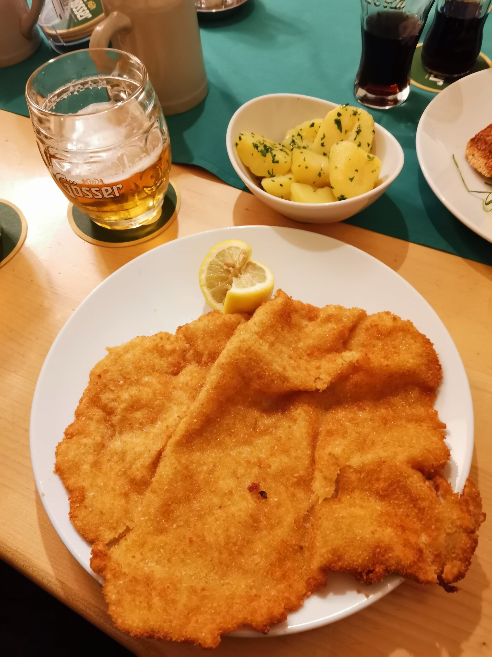 After a full day of exploration, we were really hungry, so we looked for a traditional restaurant off the main tourist routes. Our choice fell on 📍Gösser Bierklinik, a place with a unique atmosphere and excellent Wiener Schnitzel served with Gösser beer. If you’re looking for the true taste of Austria, this place is definitely worth a visit. With the beer, the meal will cost you around 25€.
