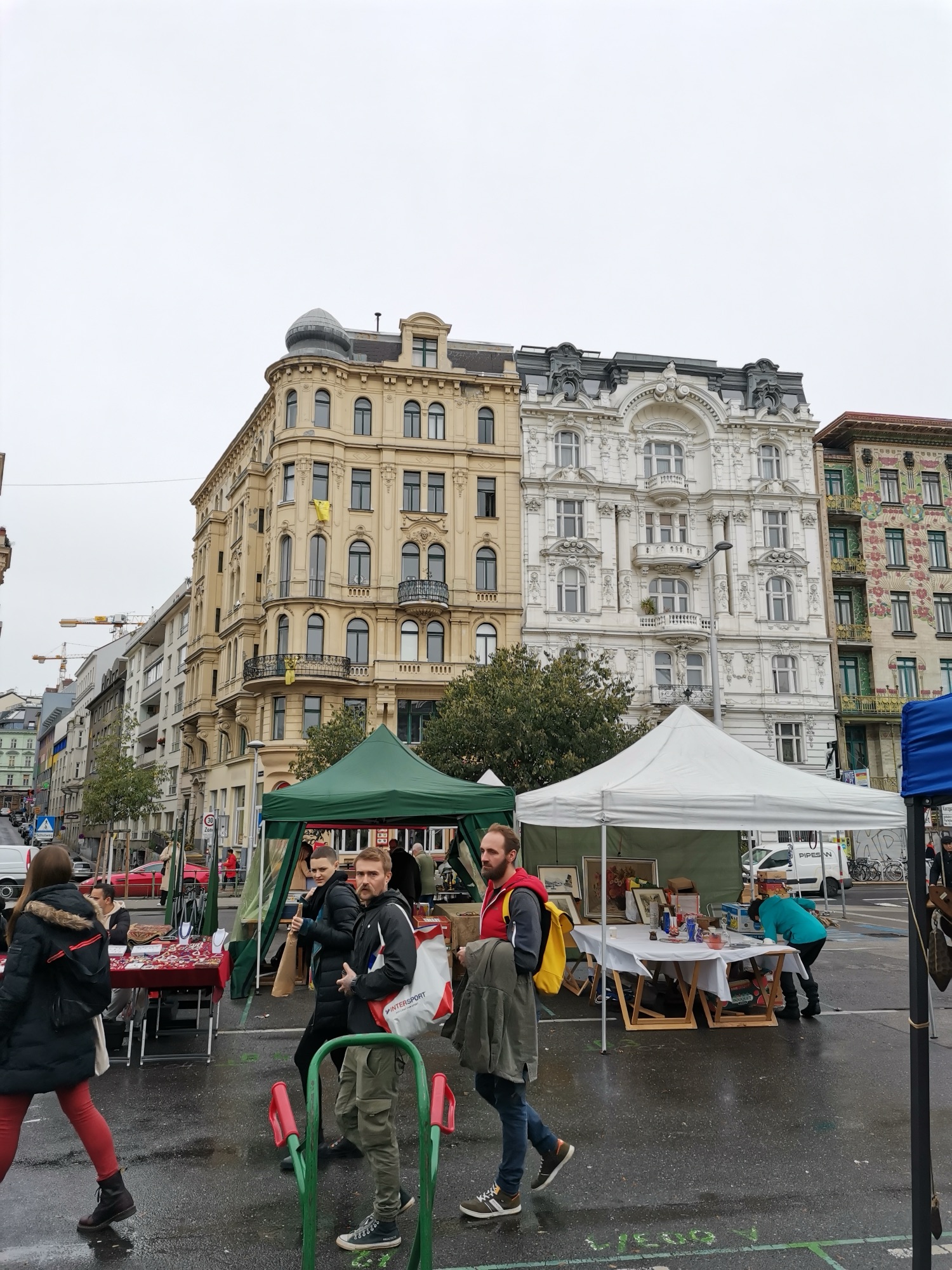 Our next stop was the market near the metro station on the green line, Kettenbrückengasse. The historic buildings with colorful facades reminded us of the streets of Copenhagen. At the market, we found various handmade goods, from wooden souvenirs to silver jewelry and even knight armor! The market was full of life, and the atmosphere was simply unique. The best part was that we could haggle with the vendors. That was the most fun for us. We ended up here completely by chance; we were heading somewhere else, looking for something different from the markets. Where to?
